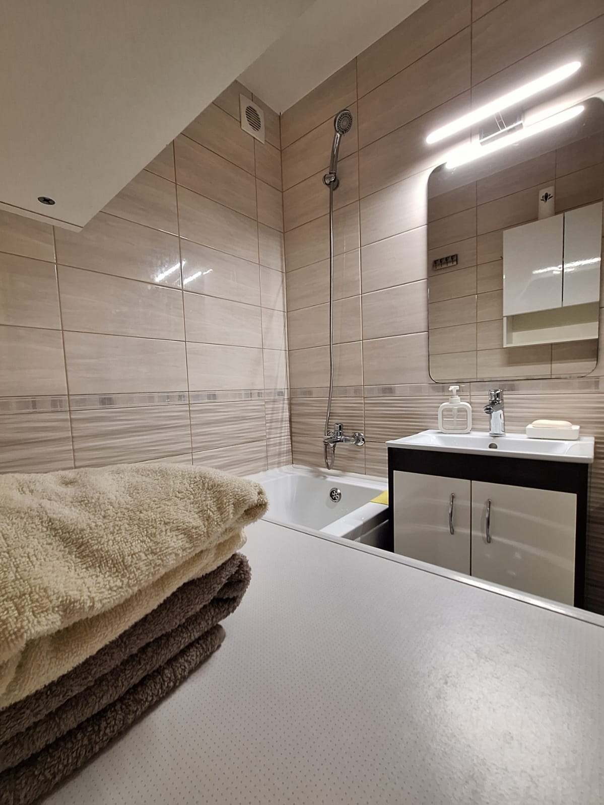 Прекрасный песчаный пляж, Комсомольский парк с детскими аттракционами , Сморжевский рынок, супермаркеты — в шаговой доступности.